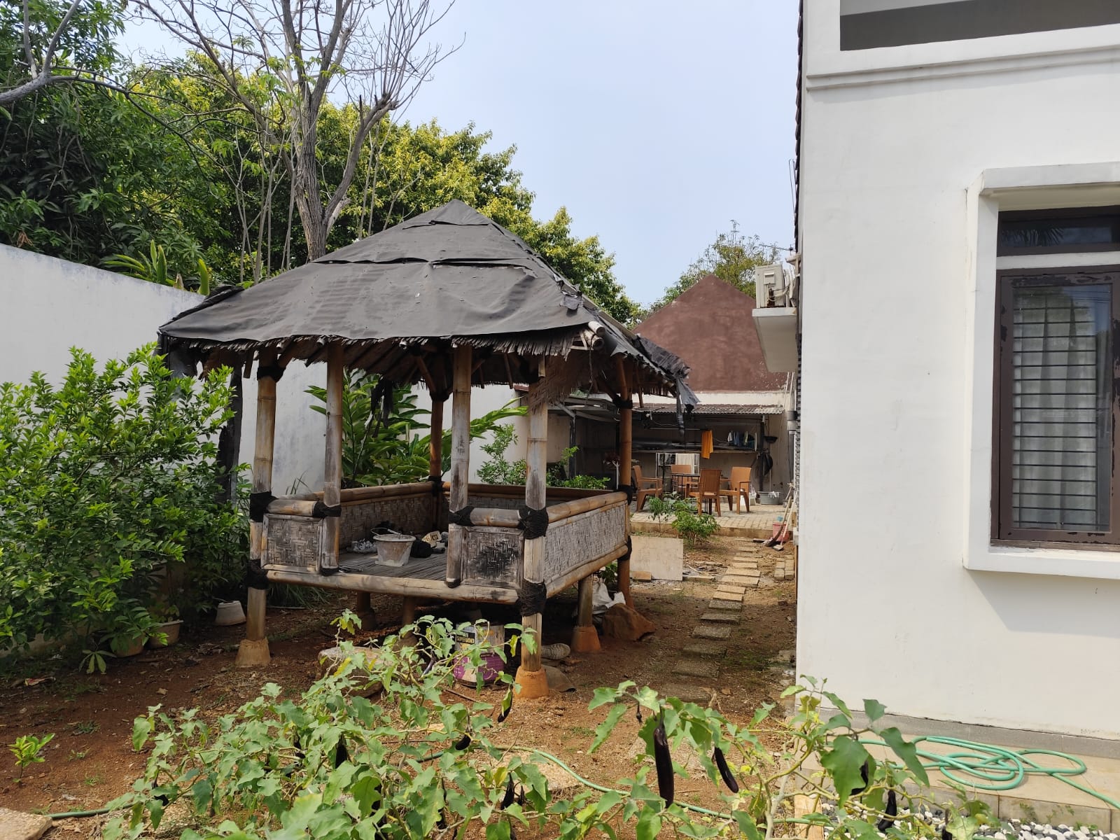 Lokasi depan taman dan ada sisa tanah di depan dan samping